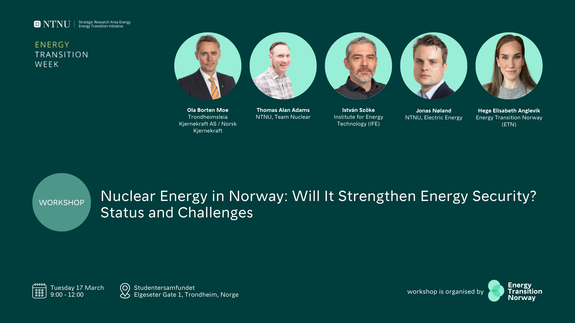 The workshop is organised by Energy Transition Norway as part of the NTNU Energy Transition Week 2026.